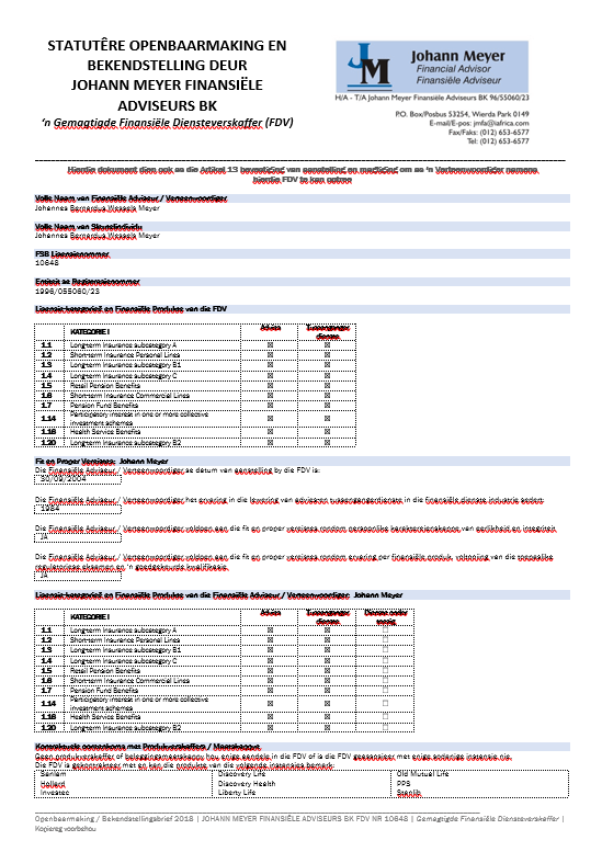 © 2017 Johann Meyer Financial Adviser CC. An Authorised Financial Services Provider (FSP) 10648